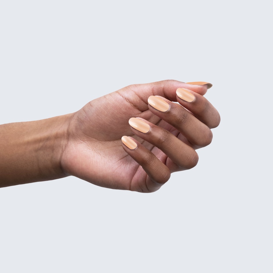 Peachy orange. Pastel. Pearl finish. Opaque. Cool undertone.